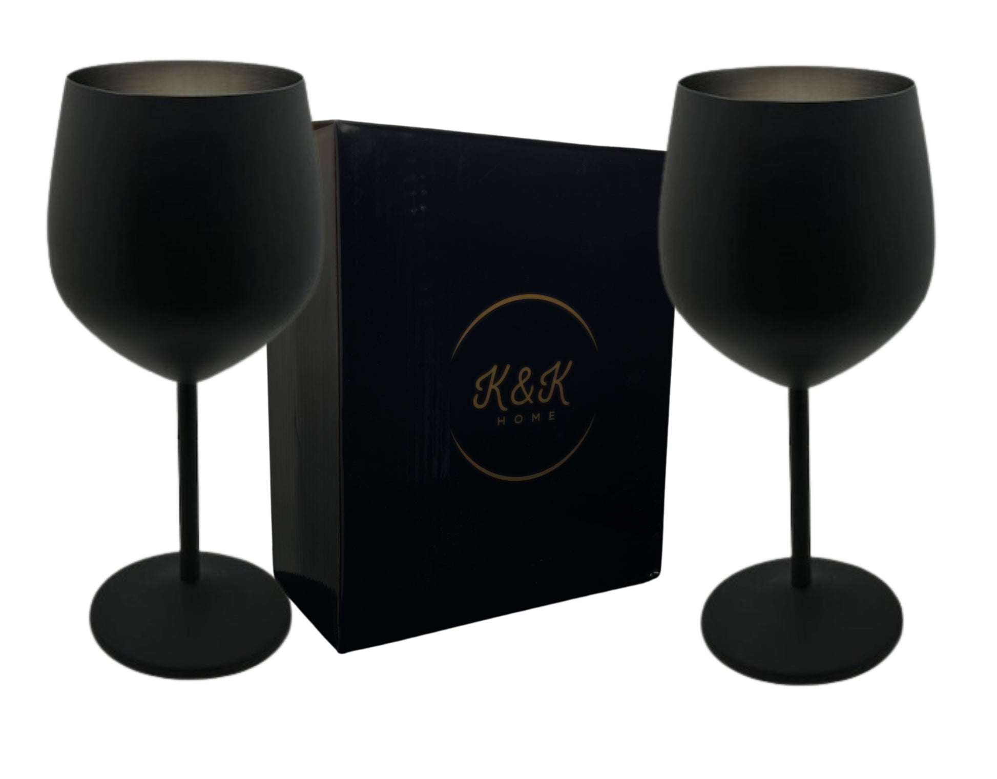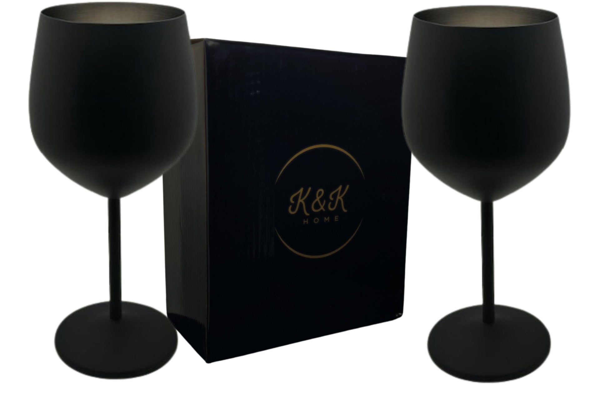 K&K Home Black Matte Stainless Steel Unbreakable Wine Glasses - 18 oz - Set of 2 Colored, Stemmed Metal Wine Glasses Perfect for Outdoors, Weddings, and Fancy Gatherings